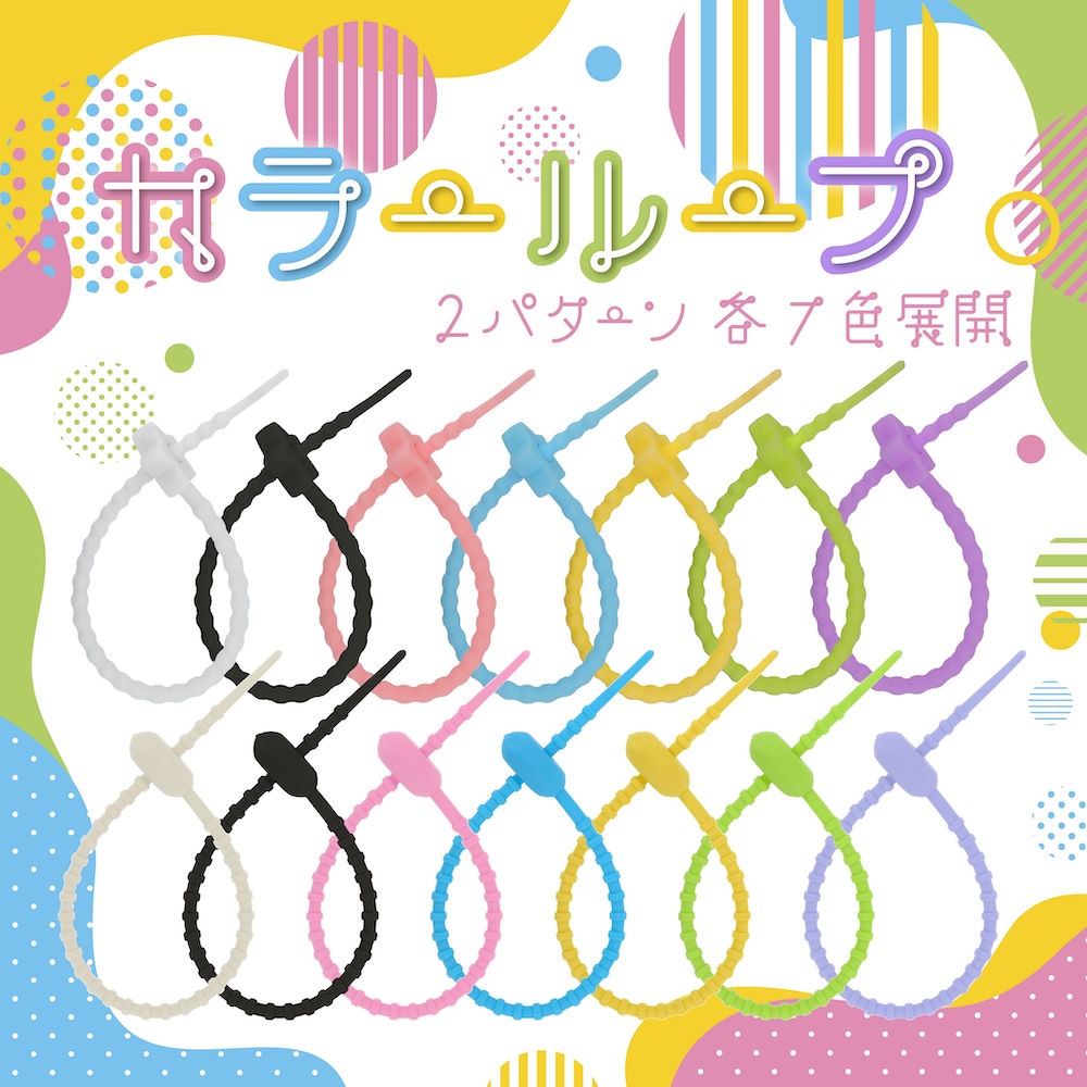多様な使い方のできる、カラフルなシリコンコード。チャームを取り付けて、キーホルダーやコードホルダーにできます。