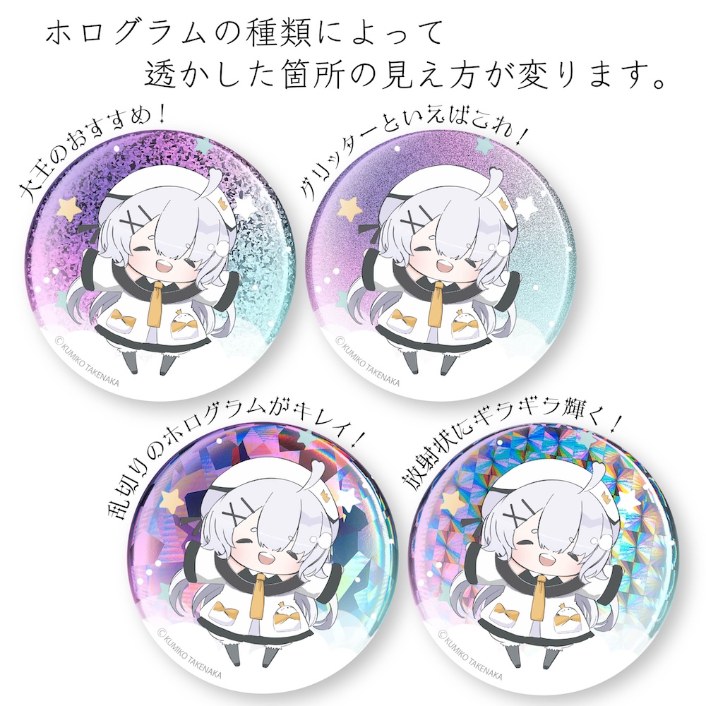 ※ホログラムを使用してない通常仕様の缶バッジや、